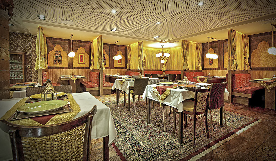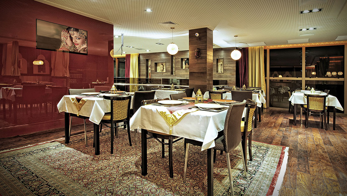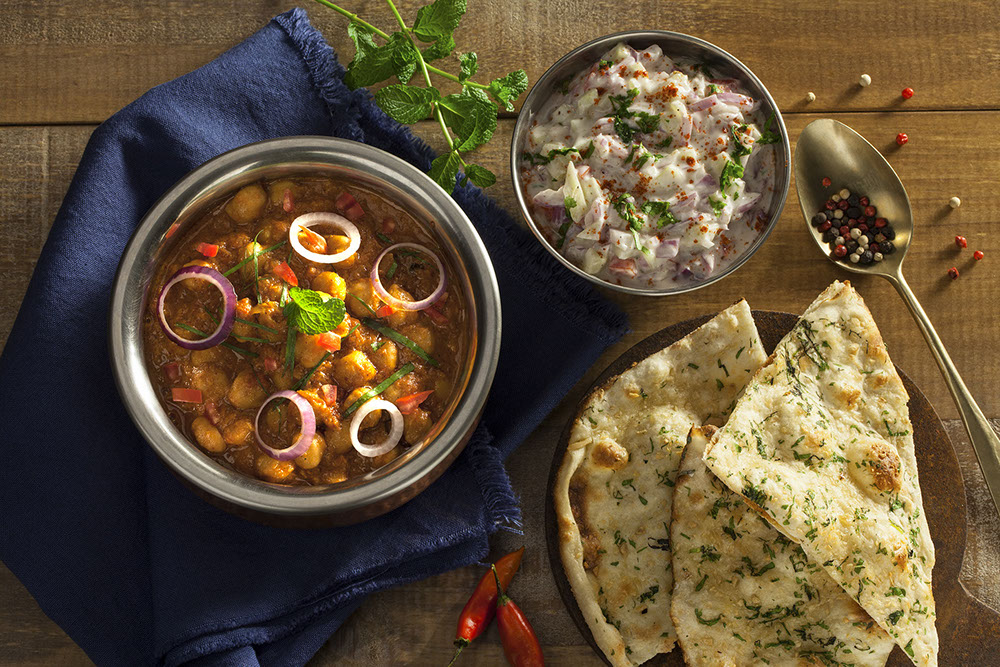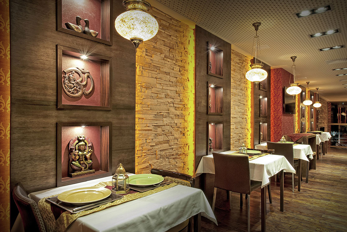São servidos pratos indianos preparados com vinte e cinco tipos de especiarias, como gengibre, açafrão, cravo, canela, anis estrelado, cardamomo e hortelã. Além, é lógico, dos diferentes tipos de pimenta, ou mirch, como é chamada em hindi, empregadas de muitas maneiras, variando em sabor e intensidade, e das muitas misturas tradicionais, chamadas "masalas", como o curry, por exemplo.